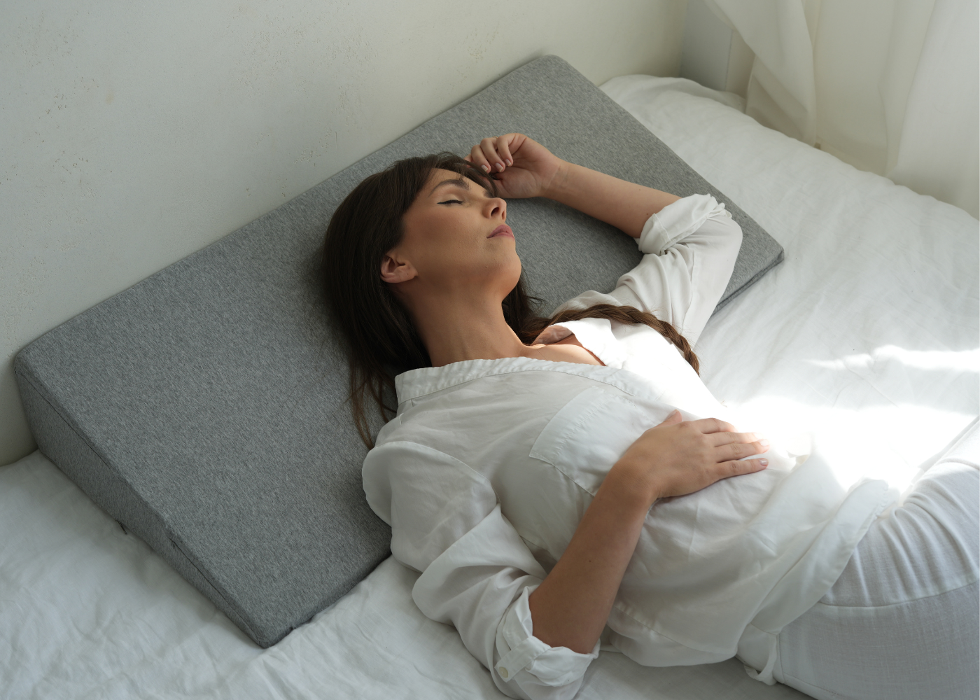 Ein Keilkissen beim Schlafen kann Schnarchen effektiv reduzieren, indem es die Atemwege optimal ausrichtet. Die leichte Neigung erleichtert die Atmung, minimiert Blockaden und sorgt für eine ruhigere Schlafumgebung.